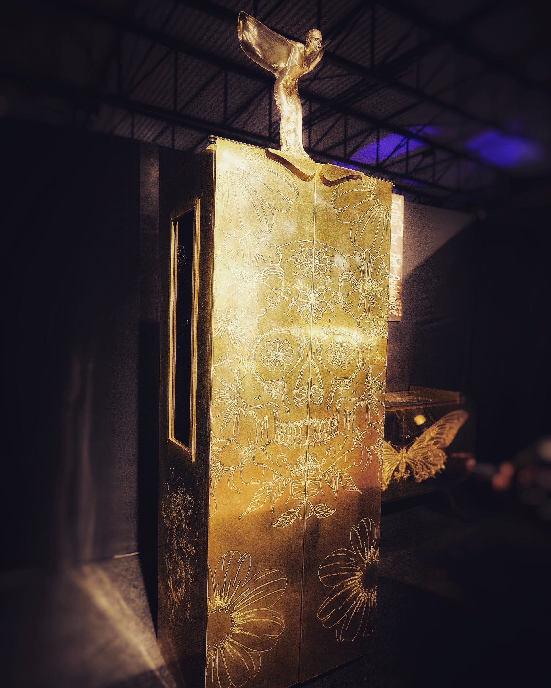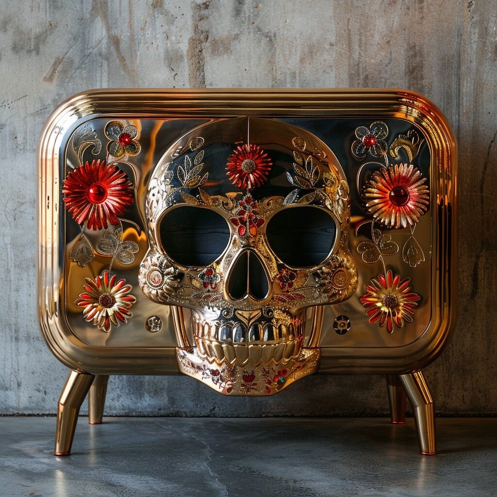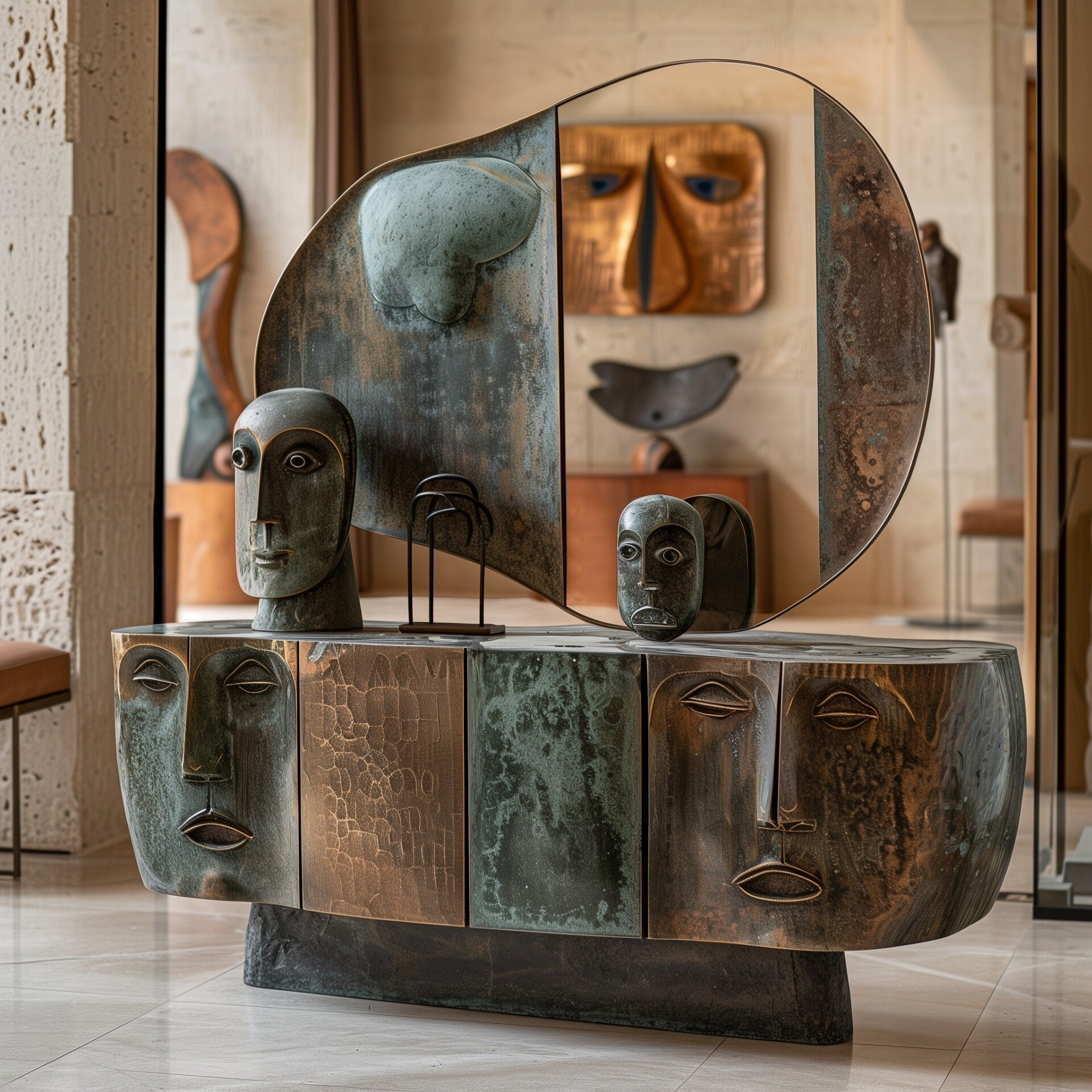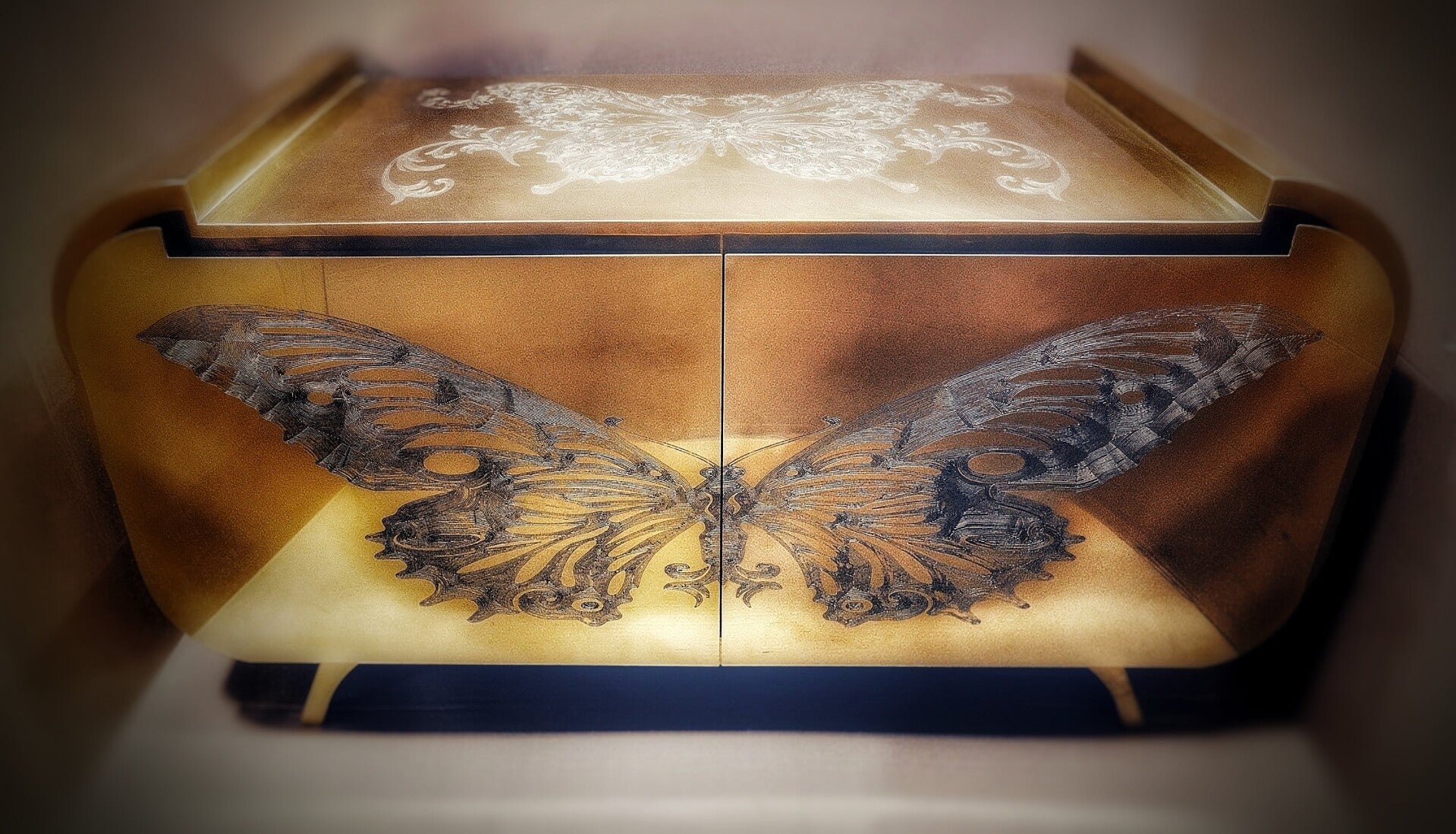 The concept of combining furniture and tattoo art on brass cabinet fronts is an innovative idea that allows the integration of tattoo designs, often personal and meaningful, directly onto furniture surfaces. This approach enables owners to personalize their furniture in a unique and expressive way. Here is a detailed description of this concept: