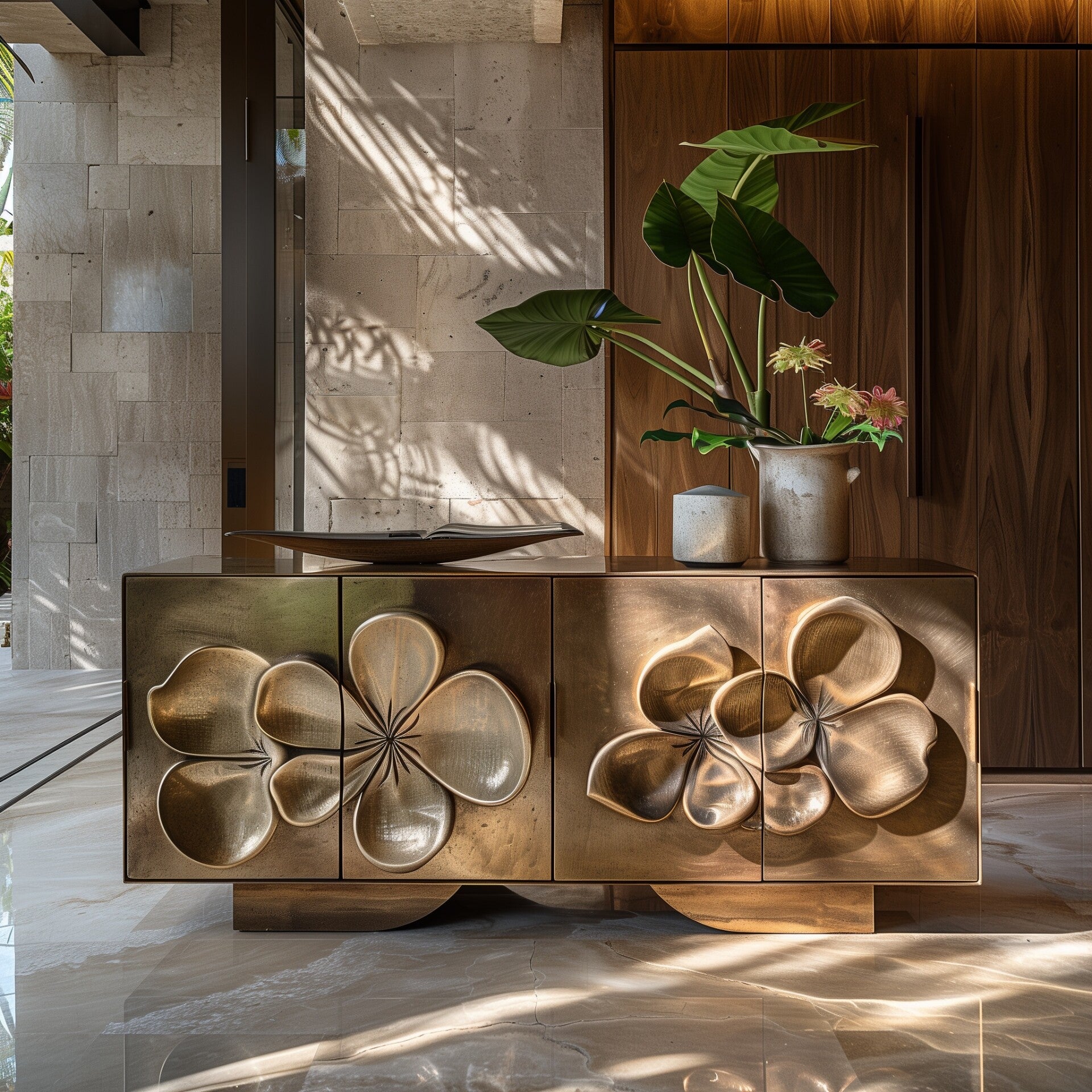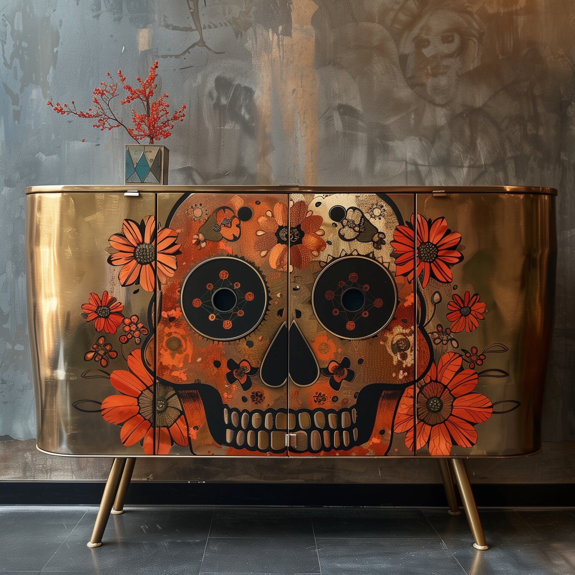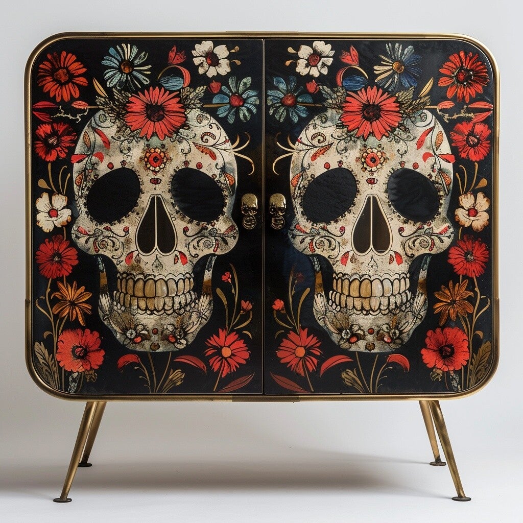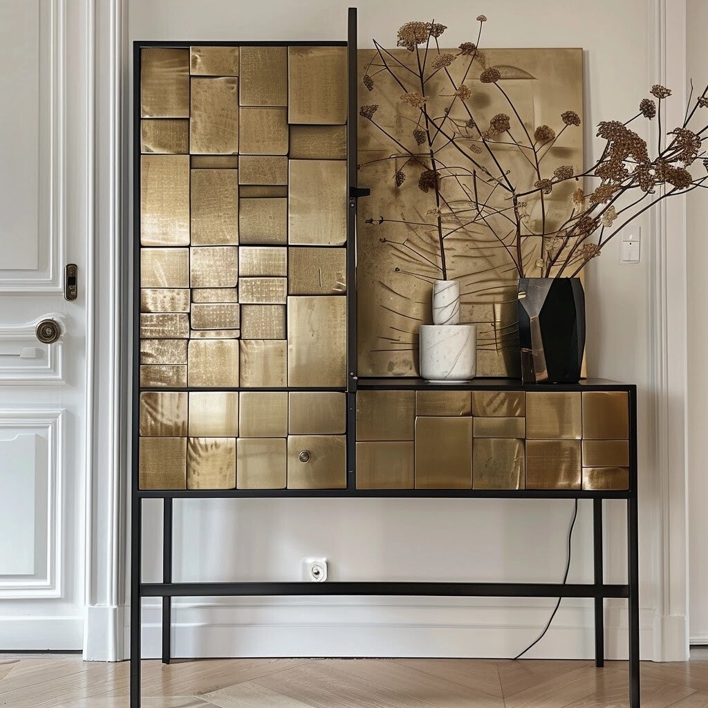 During an evening with friends, imagine gathering near a brass bar cabinet decorated with your personal tattoo designs. While serving a glass of wine or a cocktail, you can share the story and significance of these designs with your guests. This context makes the furniture not only functional but also elements of storytelling and cultural and personal exchange.